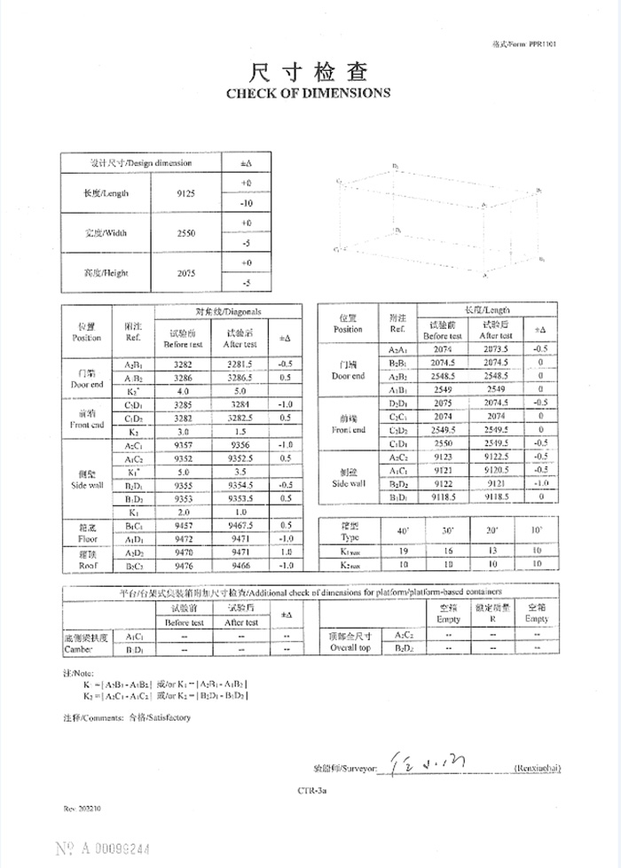 集装箱样箱试验报告