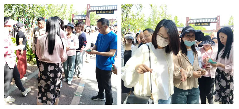 健步走活动开始前,集团领导和工作人员向参加活动的职工发放纪念品劵,活动结束后凭劵领取纪念品。