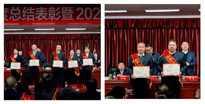 集团公司副总经理、工会主席龙琳伟宣读2025年度表彰决定。在激昂的乐曲与热烈的掌声中,市交通运输局党组成员、副局长朱晓山和集团公司领导依次为先进集体和个人颁奖,现场涌动着崇尚先进、见贤思齐、争当先锋的浓厚氛围。