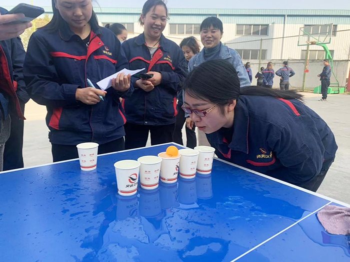 今年的庆祝活动有多人跳绳、蒙眼敲锣、夹弹珠、吹兵乓球、呼啦圈等比赛项目。赛前,参赛人员列队,公司党总支副书记、工会主席王铁秀同志向公司全体女同志致以节日的问候并祝愿大家工作愉快、生活幸福!