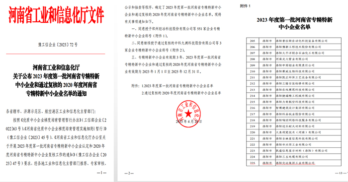 本次成功入围河南省“专精特新中小企业”名单,不仅提升了企业形象,而且为企业进一步申报“专精特新小巨人企业”(国专)打下坚实的基础,同时为践行“四敢”精神,增强企业核心竞争力注入了一针强心剂。(通讯员 孙智勇)