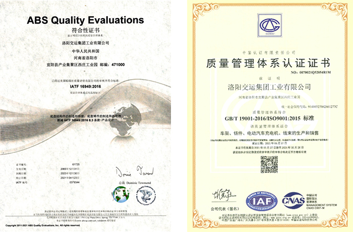 此前,公司还通过了汽车行业质量体系IATF 16949:2016认证,由“美国船级社评估公司”为公司颁发了IATF 16949:2016质量体系证书。