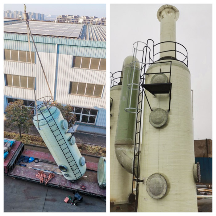 该项目自今年10月启动以来,经立项、外出考察到设备正式投入使用,历时一个多月。本次升级改造是将原造价30余万元的不锈钢设备改造为造价9万元的玻璃钢设备,并在原设备基础上进行了加粗加高,充分保证设备的环保处理效果,同时优化塔内喷淋系统、烟气排放系统、除雾系统,并更换部分循环水泵、出口净烟道及附属工艺管道等。