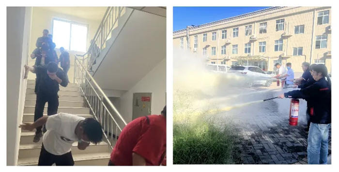 消防疏散应急演练中,现场人员在指挥员的引导下,迅速弯腰、捂鼻,按照预设疏散路线有序撤离至指定安全区域,整个过程快速、有序,仅用时1分钟。灭火演练环节,员工们严格按照培训所学进行灭火操作,切实提升了应对初期火灾的实战能力。