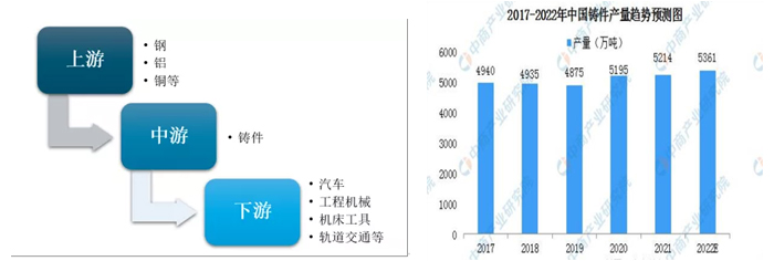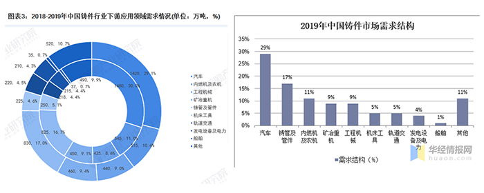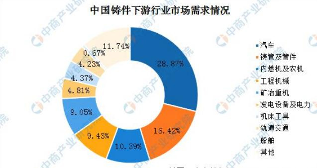 汽车市场需求为主体;铸件在市场中占主体需求地位。