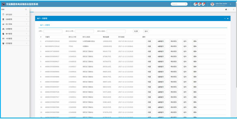 能过卡务管理模块能够实现对充电桩上的卡务进行管理,包含添加卡、修改卡信息、删除卡、定义黑名单,白名单、查看卡的消费情况、修改卡的密码等功能。