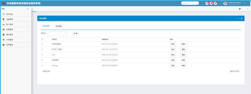 角色管理中可实现定义系统中的具有一组相同权限的权限组、角色权限的修改、角色的删除等功能